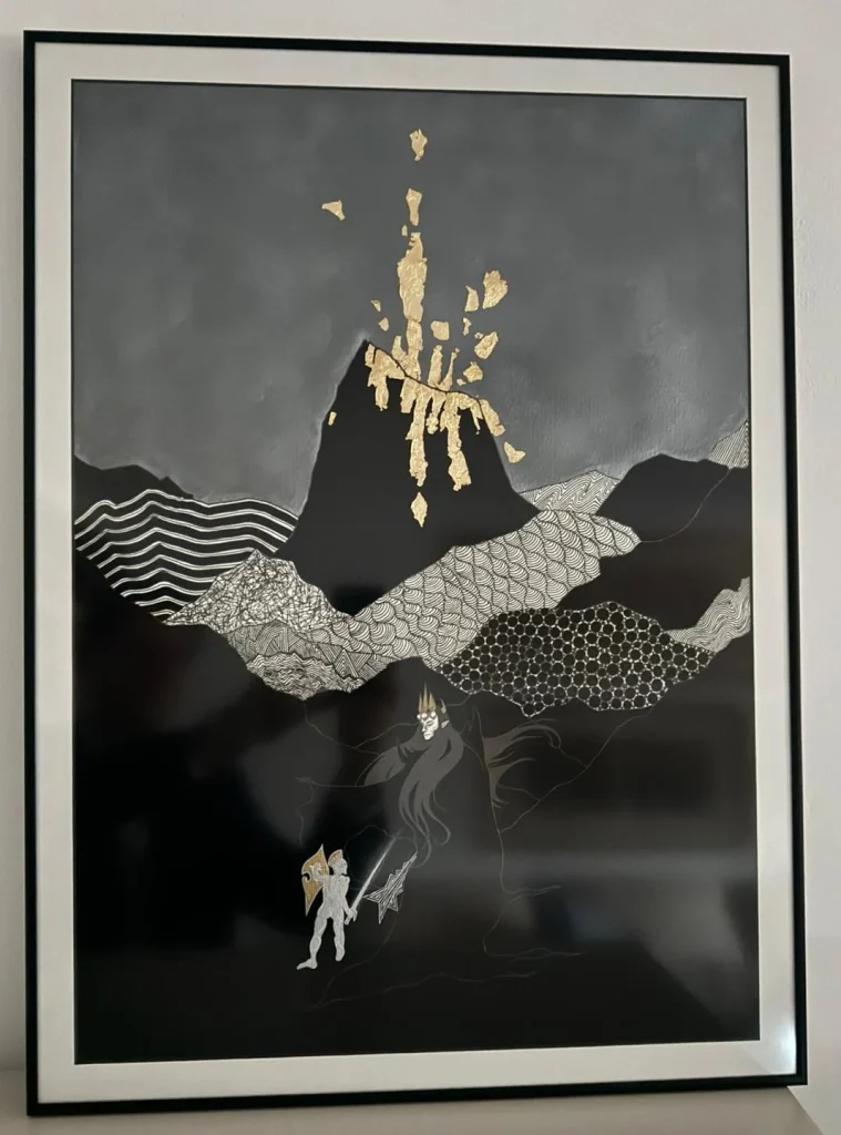 Representación inspirada en el universo de Tolkien del combate singular entre Fingolfin, el rey de los Ñoldor, y Morgoroth en las puertas de Angband.